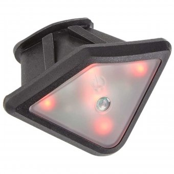 Das LED-Rücklicht sorgt für erhöhte Sichtbarkeit im Straßenverkehr. Das Licht wird durch Druck auf der Deckscheibe an- und ausgeschaltet und bietet mehrere Funktionsstufen. Nach dem ersten Druck-Kontakt wird das Licht angeschaltet und das rote Licht leuchtet konstant. Bei dem zweiten Druck wird in einen blinkenden Modus gewechselt. Durch den dritten Druck-Kontakt wird ein rotierendes Blinken angeschaltet. Anhand des vierten Drucks wird die Lampe wieder ausgeschaltet. Das Rücklicht hält Sprühwasser bis zu einem Einfallwinkel von 60 Grad stand. Eine Knopfbatterie des Typs CR 2032 - 3V ist in der Lieferung enthalten und bereits eingebaut.